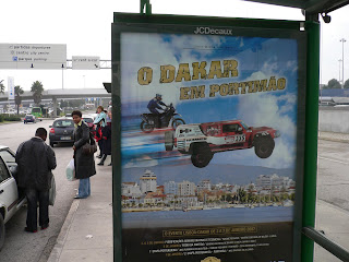 Весь город увешан флагами и плакатами про Дакар. Уже стоит стартовый подиум.