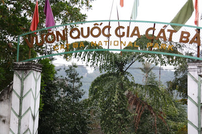 Самый туристический автобус мира, тойота-хайэйс, довозит нас до входа в национальный парк острова Кат Ба. Это родной дом для 32 видов обезьян, в частности, для исчезающего вида …, отличающегося нетривиальной панкрокерской прической.