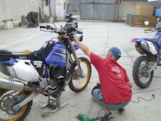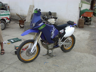 Отдельное спасибо японцу за запчасти и немцу за подготовку мотоцикла. 4 алюминиевых бака на 40 литров в сумме, реорганизованный кокпит с двумя компьютерами IMO R50 Rallye, кроссовая коробка воздушного фильтра с кроссовым же фильтром (стало быть, раздушен почти полностью) и выхлоп от Yamaha Racing. Мотоцикл идеально развесован, лошадей ощутимо прибавилось.
