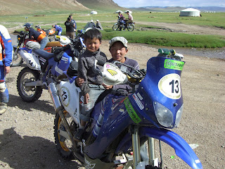 Перед финишем этапа выпала возможность отмыть мотоциклы. Нельзя отказывать детям вообще, а монгольским в частности, посидеть и потрогать твой мотоцикл:) Для них это событие трудно переоценить, светящиеся глаза видны даже на фотографии. Публики, благодарней монгольской, надо поискать по миру. Это не нагловатые марокканцы, старающиеся что-нть стибрить, пока ты отвлекся и не тупые европейцы, лезущие прямо под колеса. Монголы готовы скакать на лошади 10 верст, чтобы привезти тебе трехлитровую банку бензина. Всей многочисленной семьей прыгают на твоих покрышках, если ты, не дай Бог, где-нибудь разулся.